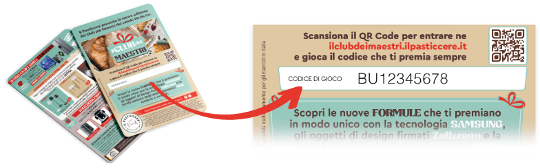 Con i prodotti STAR de Il Pasticcere è più facile raggiungere le soglie premio: ottieni +2 PUNTI OMAGGIO giocando i CODICI dei prodotti coinvolti nei 3 periodi. Puoi riconoscere questi prodotti dalle prime due lettere del codice che trovi stampato sulla cartolina.
